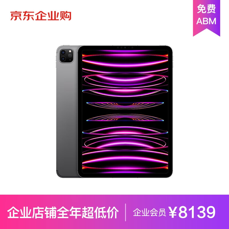 Apple iPad Pro 11英寸平板电脑 2022年款(256G 5G版/M2芯片Liquid视网膜屏/MNYQ3CH/A) 深空灰色*企业专享价格:8799.00元!