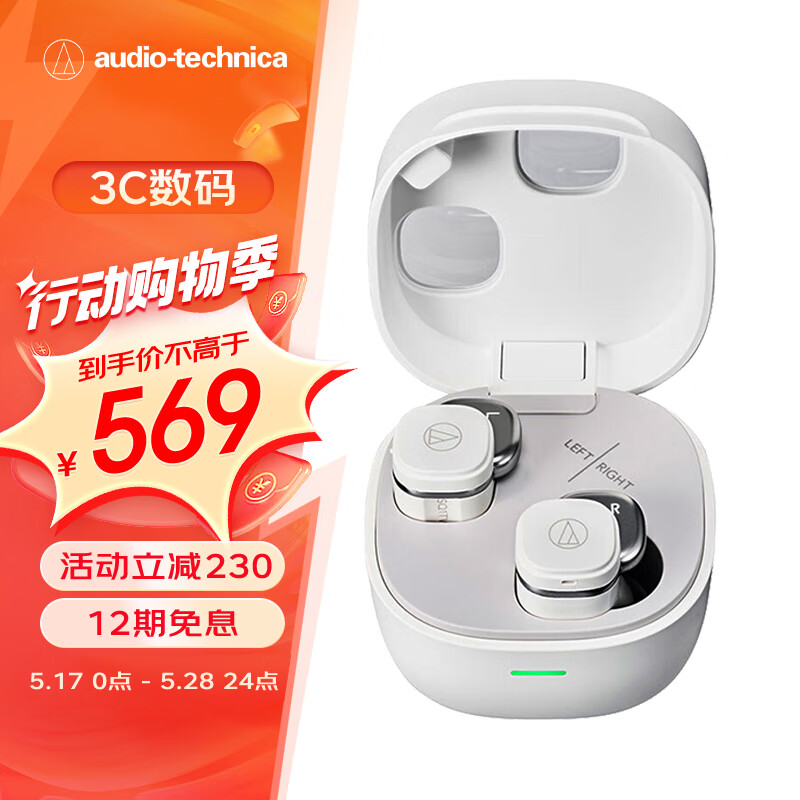 铁三角ATH-SQ1TW2 蓝牙无线耳机 真无线耳机 无线充电 IP5X*防水 白色价格:799.00元!