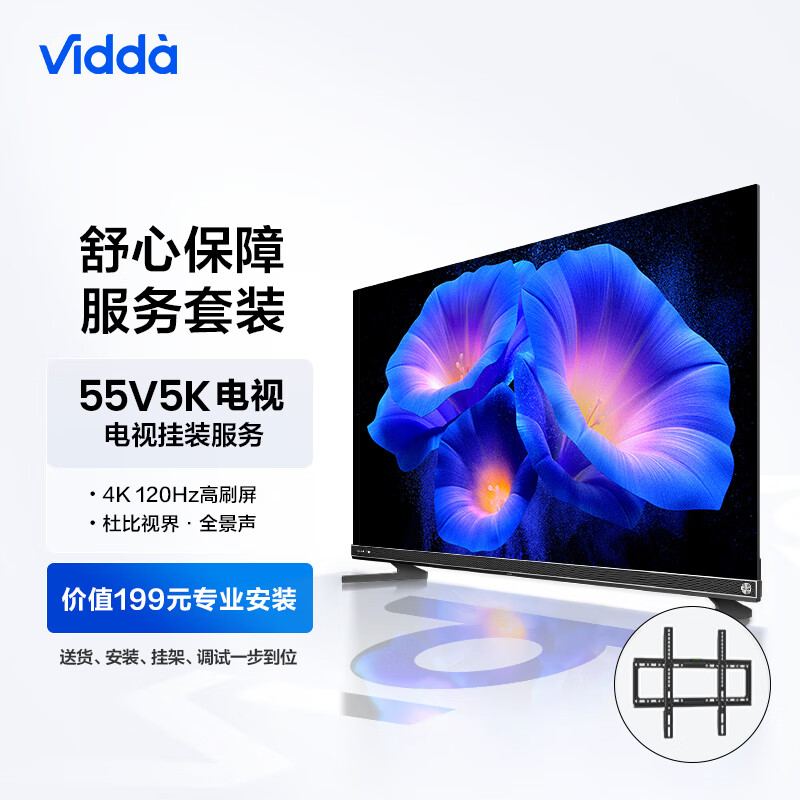 Vidda 55V5K 海信 55英寸 音响 120Hz电视机+送装一体服务套装 送货 安装 挂架 调试一步到位价格:2399.00元!