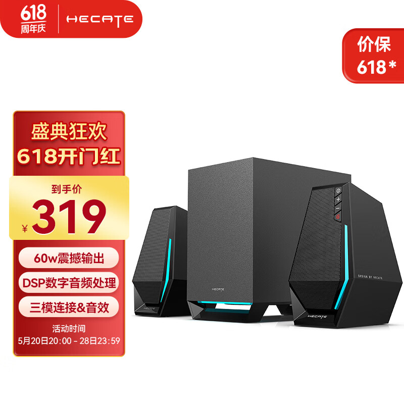 漫步者(EDIFIER)HECATE G1500max游戏音箱2.1电竞桌面音响低音炮蓝牙5.3电脑多媒体家用台式机 RGB灯效 黑色价格:349.00元!