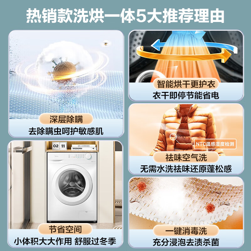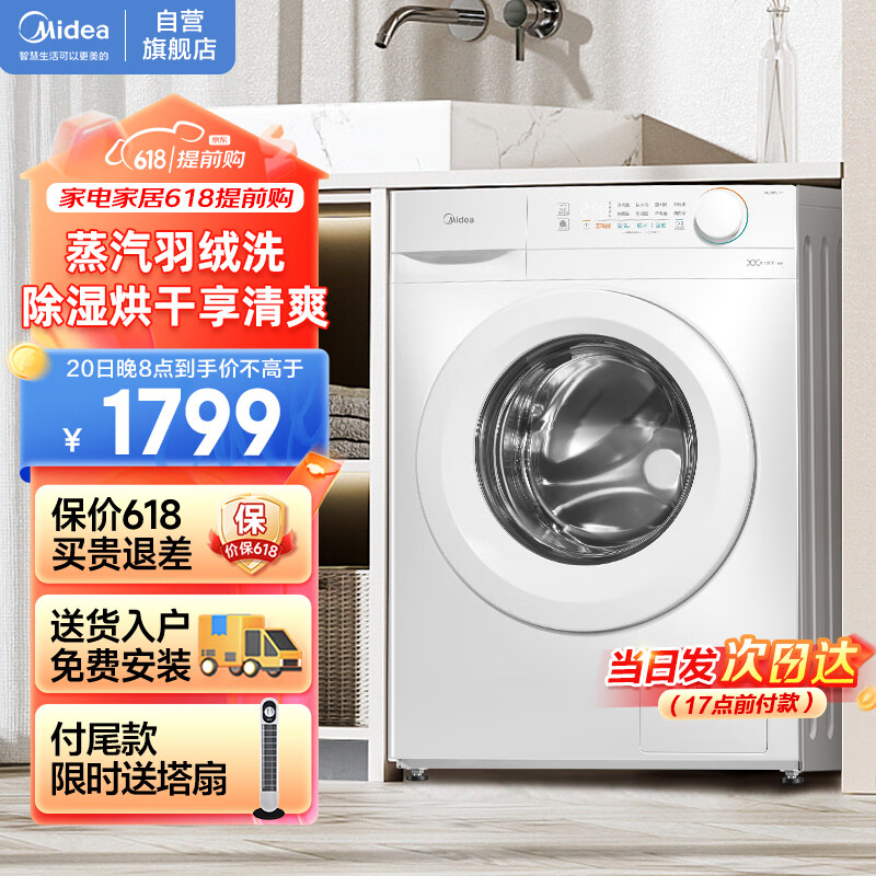 美的(Midea)10公斤kg全自动滚筒洗衣机 洗烘一体 智能烘干 祛味空气洗 BLDC变频 MD100V11F[官方]价格:1799.00元!