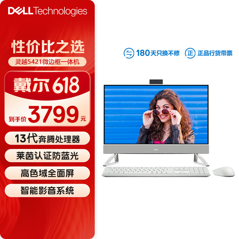 戴尔(Dell)灵越5421一体机电脑(酷睿13代奔腾 U300 8G 256GSSD)白 23.8英寸大屏显示器价格:3799.00元!