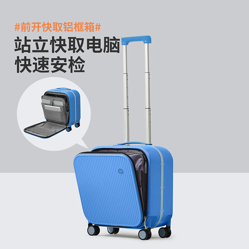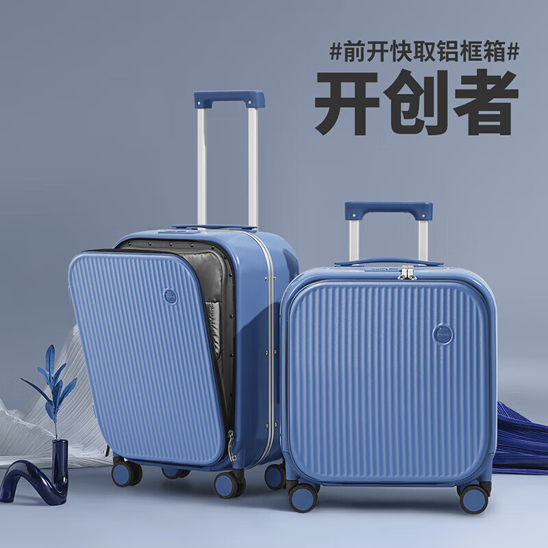 米熙行李箱女前开盖铝框箱子密码箱男小登机箱旅行箱18英寸克莱茵蓝70价格:599.00元!