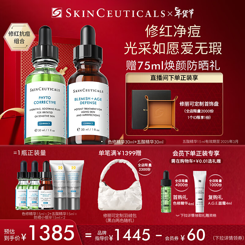 修丽可色修精华30ml+五酸30ml套装 护肤品水杨酸舒缓控油新年情人节礼物价格:1445.00元!