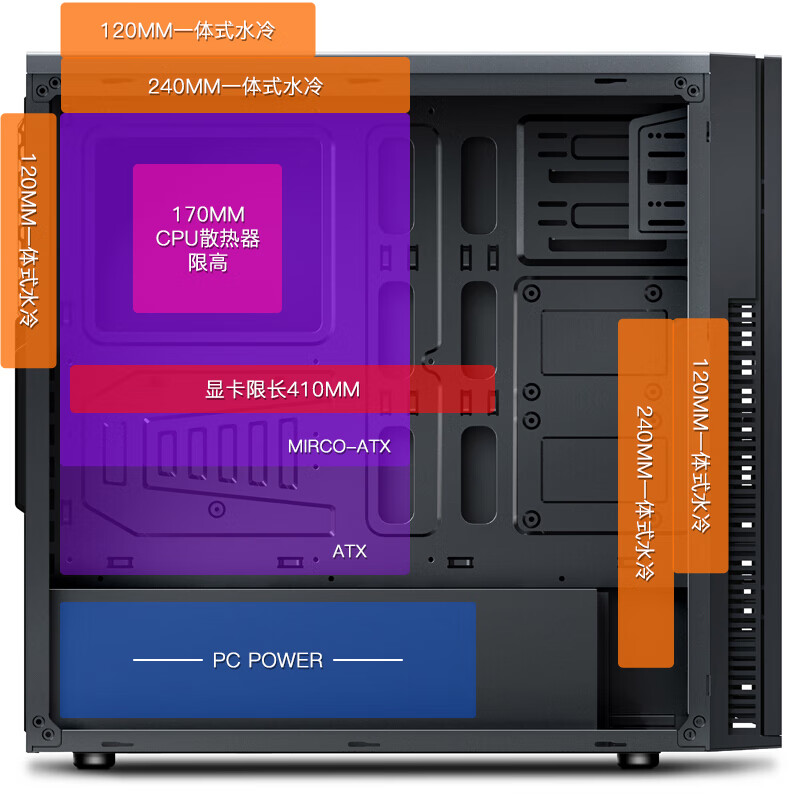 支持主板:ATX(标准型),M-ATX(紧凑型),MINI-ITX(迷你型)