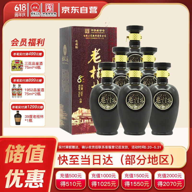 桂林三花酒 老桂林 8年陈米香型白酒45度500ml*6瓶整箱装广西送礼白酒价格:719.00元!
