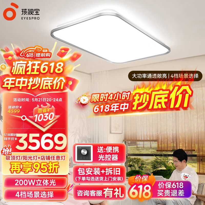 孩视宝卧室护眼吸顶灯全光谱客厅儿童房防蓝光频闪led灯具AH41-T价格:4599.00元!