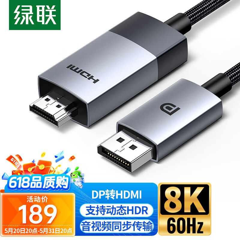 绿联 DP1.4转HDMI2.1转接线 8K高清DisplayPort转HDMI连接线 适用显卡电脑接电视显示器视频线1.5米价格:219.00元!