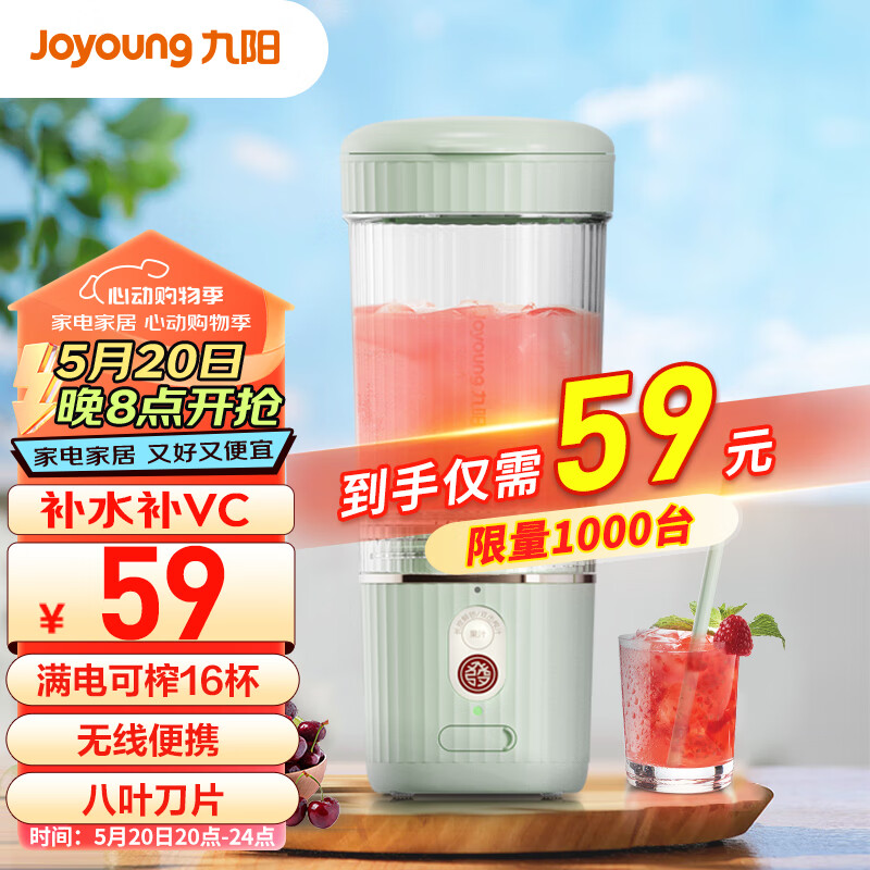 九阳(Joyoung)榨汁机便携式网红充电迷你无线果汁机料理机DIY果茶机L3-LJ561价格:59.00元!