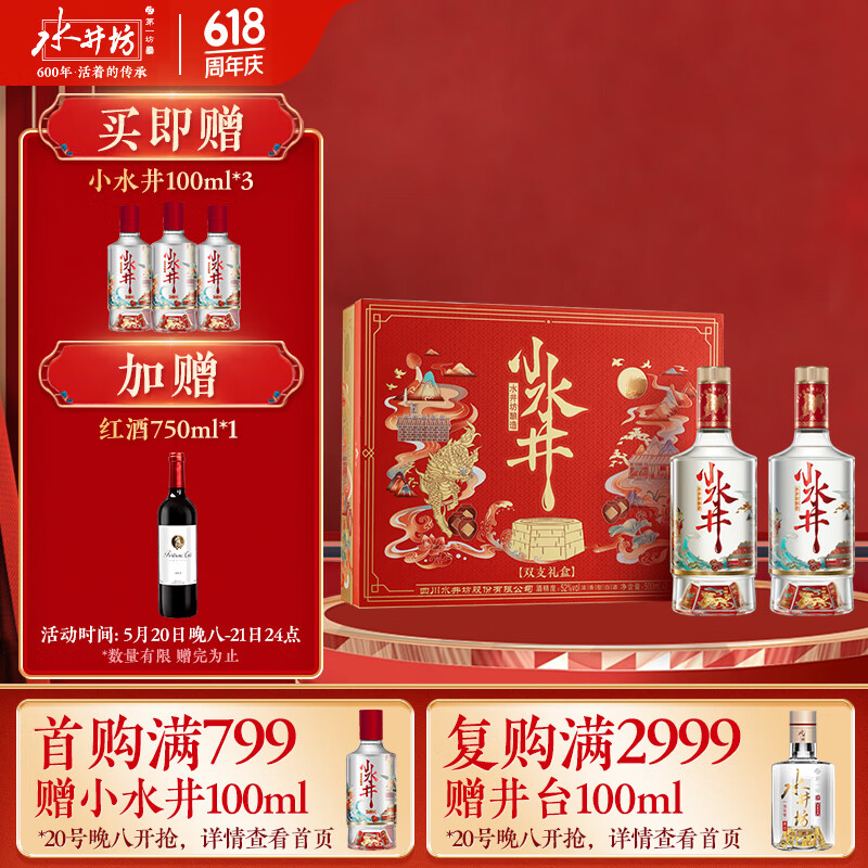 水井坊 小水井 52度 500ml*2瓶 礼盒装 浓香型白酒价格:378.00元!