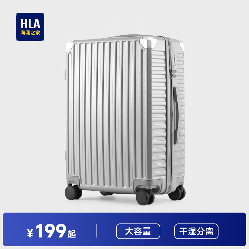 海澜之家(HLA)行李箱男轻便出差托运商务拉杆箱女大容量旅行密码箱流光银29英寸价格:259.00元!