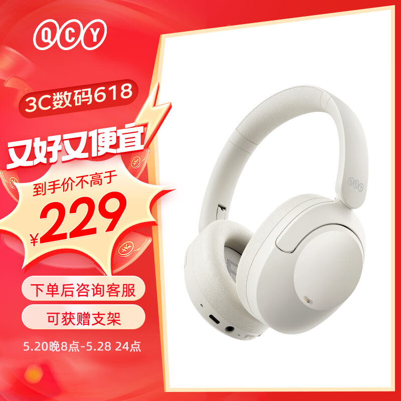 QCY H4 主动降噪-43dB头戴蓝牙耳机重低音无线耳麦手机听力超长待机适用于全手机 白色价格:229.00元!