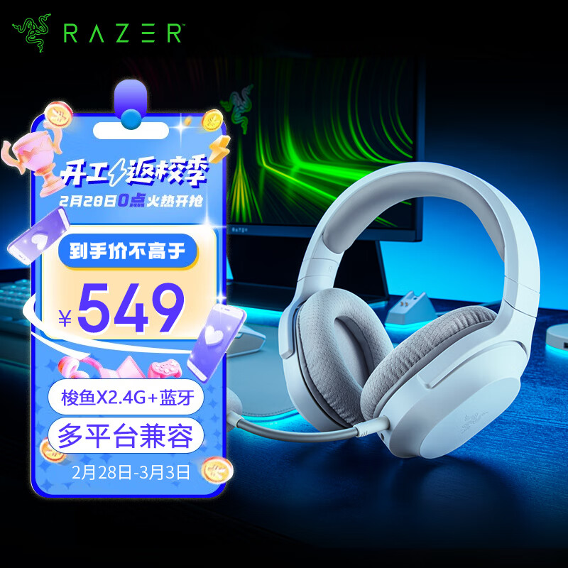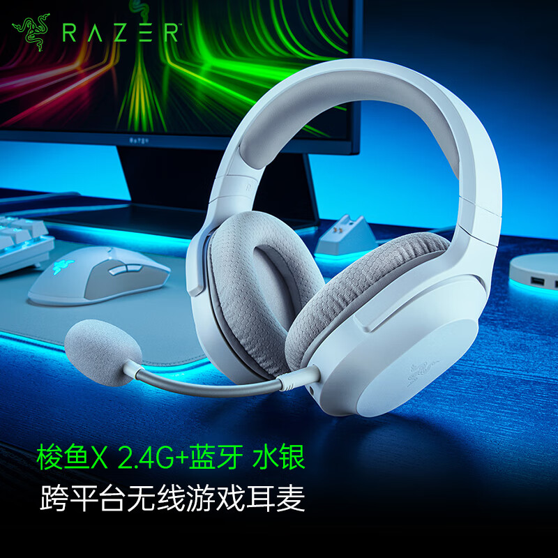 雷蛇(Razer)梭鱼X 2.4G+蓝牙 无线头戴式电竞游戏耳机耳麦 降噪麦克风 多平台兼容 吃鸡神器 白色价格:549.00元!