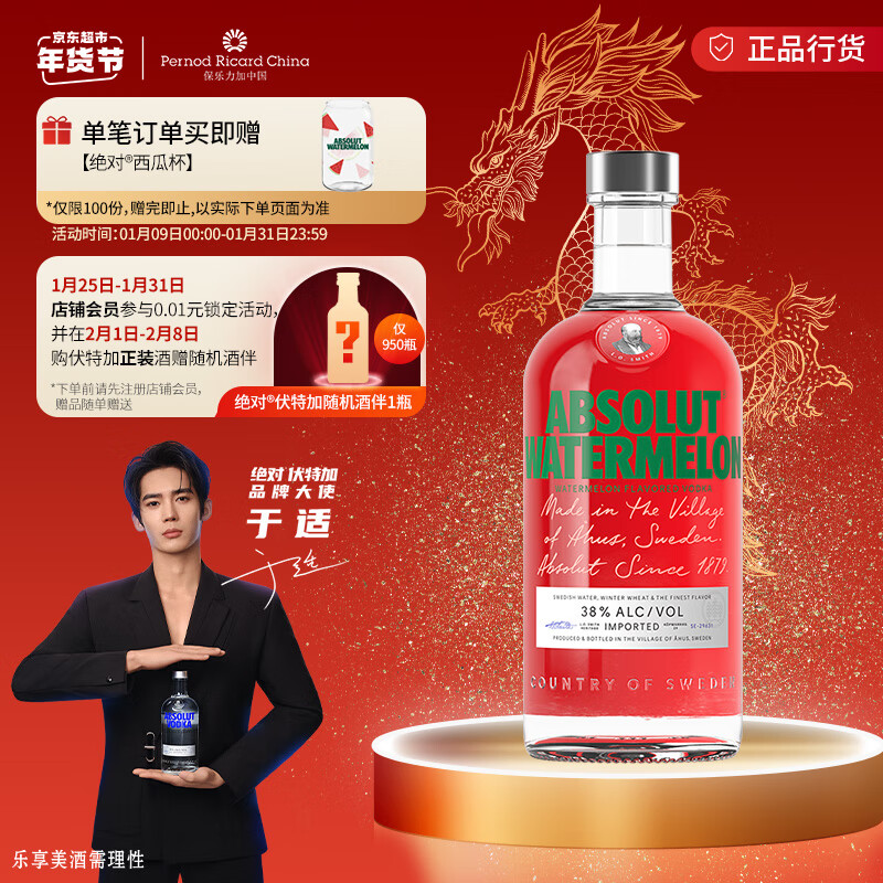 伏特加(Absolut Vodka)洋酒 西瓜味 700ml 年货畅饮价格:99.00元!