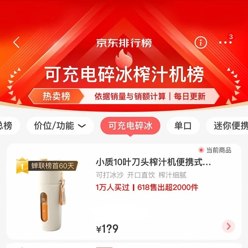小质10叶刀头榨汁杯榨汁机便携式小型果汁机冰沙机果汁杯奶昔机搅拌机水果蔬菜可碎冰家用充电随身破壁 10叶刀头 轻松碎冰 GB02系列价格:169.00元!