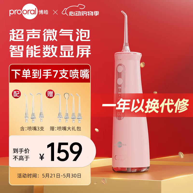 博皓(prooral)手持立式冲牙器水牙线洁牙器大水箱智能屏显 5025pro黛粉 520情人节礼物价格:159.00元!