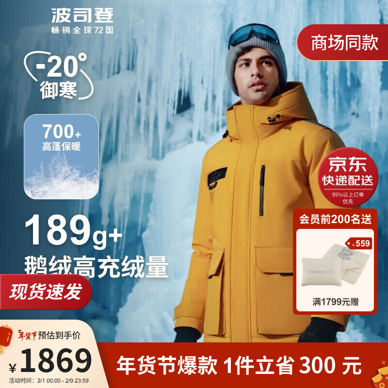 波司登极寒鹅绒羽绒服男款90绒加厚连帽时尚工装外套B30142311价格:2169.00元!