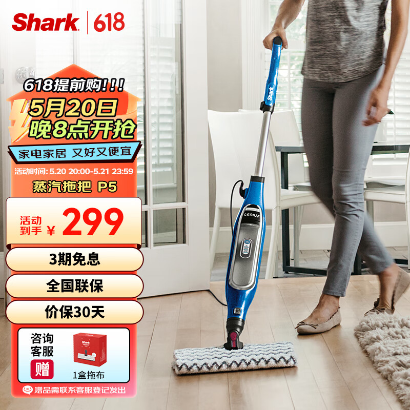 shark鲨客 蒸汽拖把 家用厨房清洁擦地拖地清洁机 高温蒸汽除菌 电动手持洗地机吸尘器伴侣P5价格:299.00元!