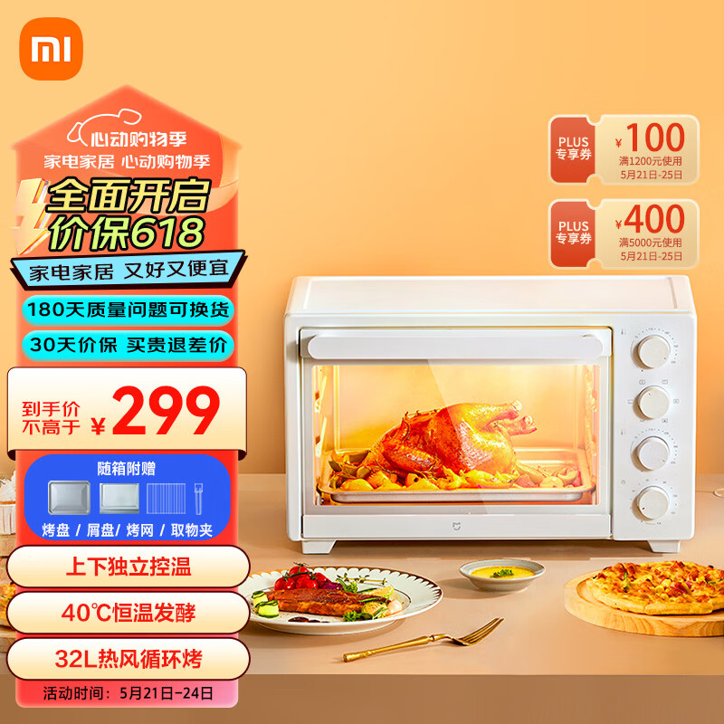 米家小米电烤箱小型家用发酵箱干果机 全自动烘焙烘烤解冻多功能 烧烤红薯鸡翅神器 台式大容量32L价格:299.00元!