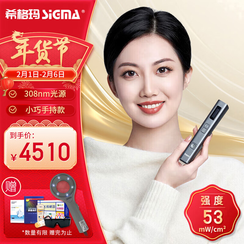 希格玛(SIGMA)白癜风治疗仪308光疗仪银屑病理疗仪适合小面积疑难部位SQ308PCHFD【53mW高强度】价格:6000.00元!