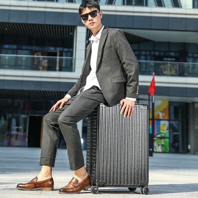 皮尔卡丹拉杆箱男女款铝框行李箱万向轮24英寸托运箱大容量密码箱旅行箱子价格:568.00元!