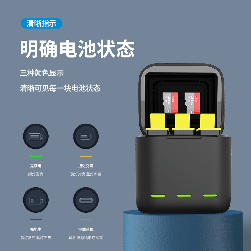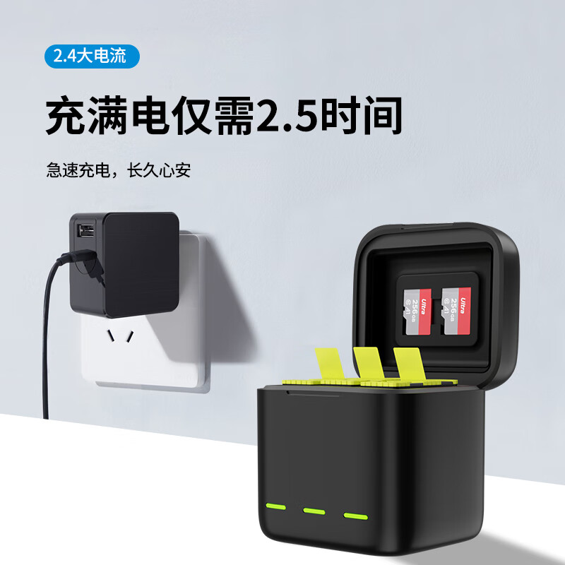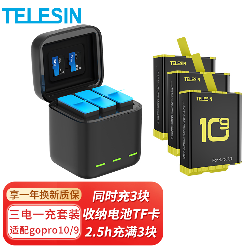 TELESIN适配gopro11电池hero10 9电池充电器gopro配件同时三充 收纳内存卡电池收纳 三电一充套装价格:278.10元!