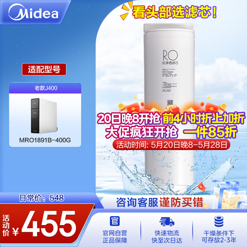 美的净水器滤芯—适用于MRO1891B-400G(A400)400G净水器滤芯-Best双芯系列- RO反渗透滤芯价格:465.00元!