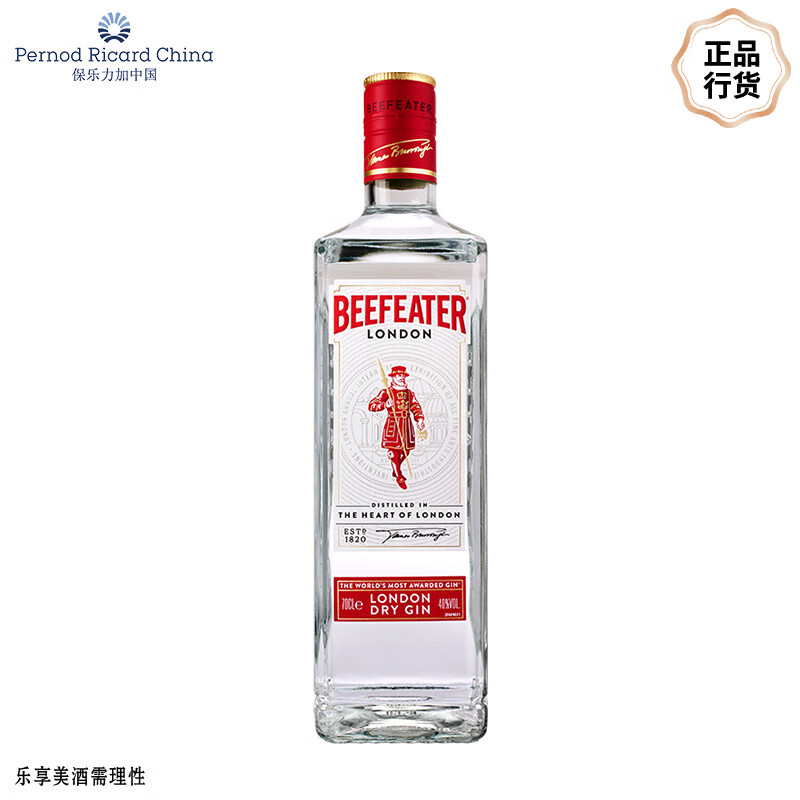 必富达(Beefeater)金酒琴酒毡酒杜松子酒 洋酒英国伦敦 进口烈酒 蒸馏酒700ml价格:98.00元!