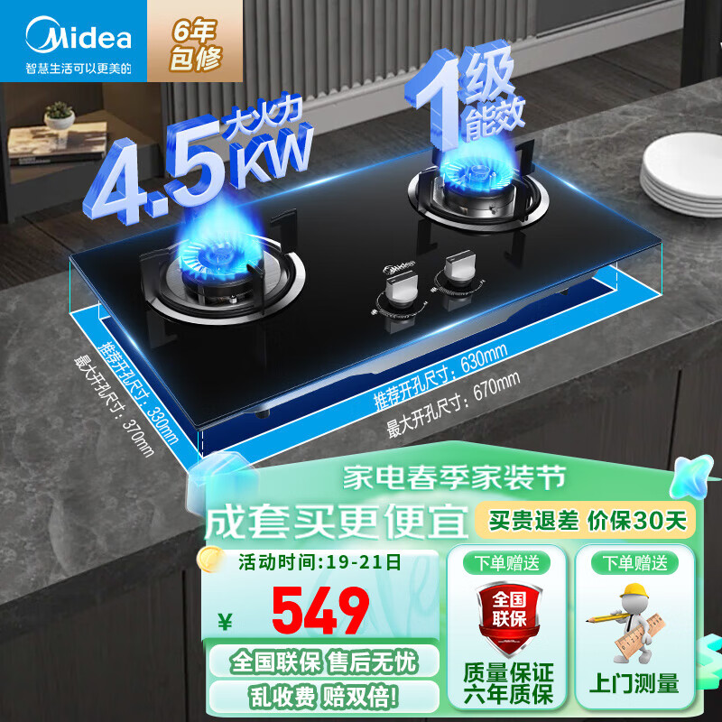 美的(Midea)燃气灶 大火力灶具家用双眼灶煤气灶可调节开孔 不锈钢面板天然气液化气台式嵌入式两用煤气炉双灶 4.5kw钢化玻璃猛火灶 (天然气)价格:699.00元!
