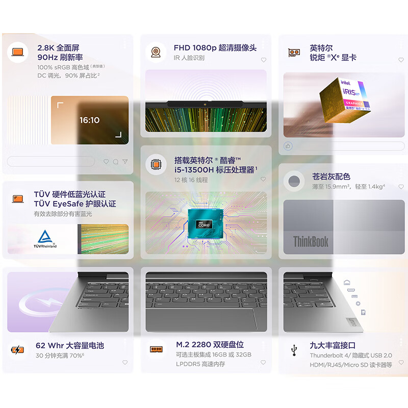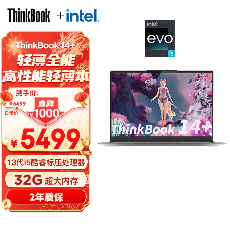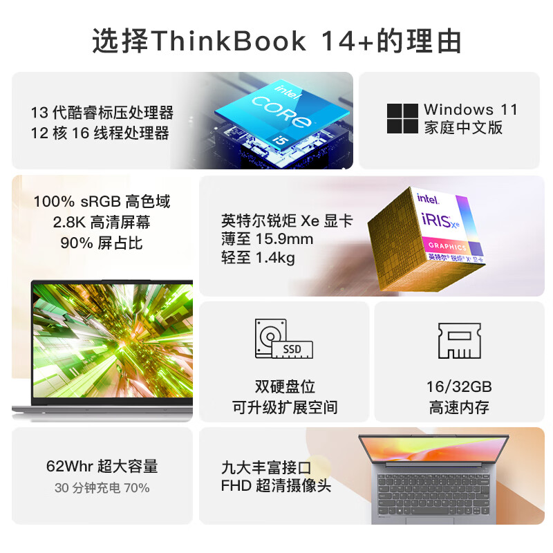 ThinkPad联想ThinkBook 14+ 英特尔酷睿i5 14英寸标压便携轻薄办公本13代i5-13500H 32G 512G 2.8K 90Hz价格:5499.00元!