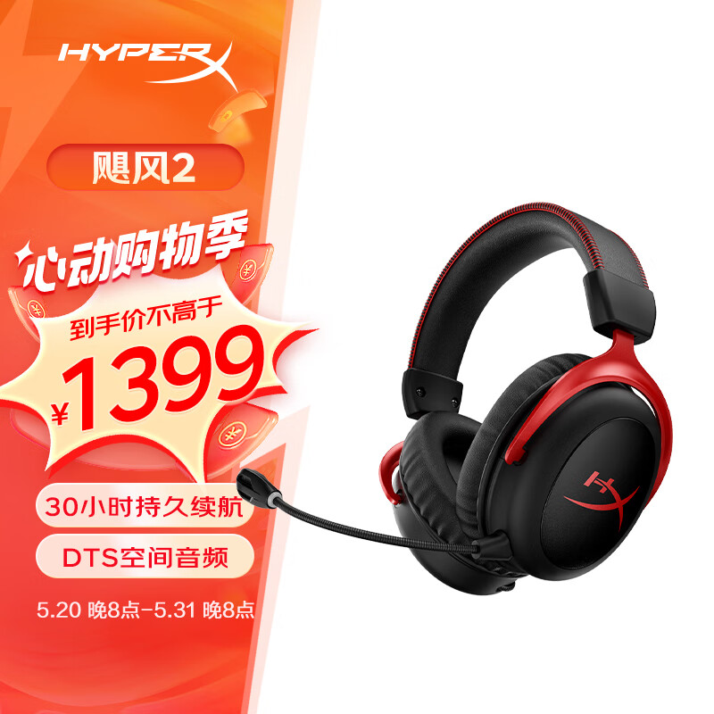 极度未知(HYPERX) Cloud II Wireless 飓风2无线电竞游戏耳机头戴式吃鸡耳麦降噪麦克风 Cloud2价格:1399.00元!