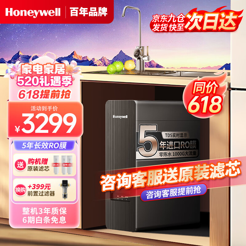 霍尼韦尔(Honeywell)贝加尔系列 厨下净水器1000G家用净水机厨房厨下式净饮机直饮机5年RO反渗透过滤器URHD1-210-M2价格:3299.00元!