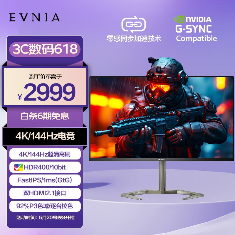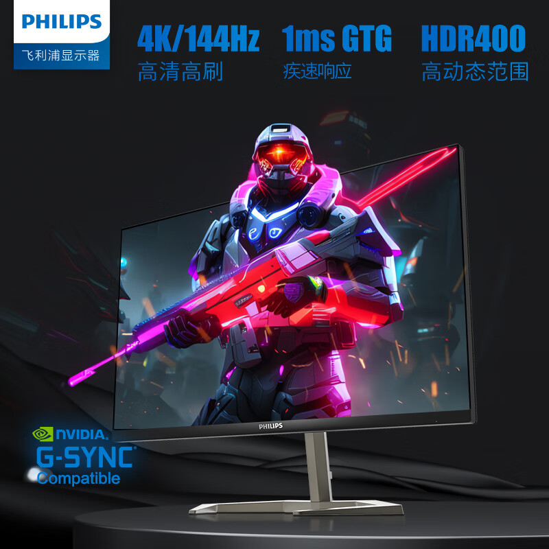 飞利浦31.5英寸 4K144HzFastIPS1ms HDR400出厂校准 G-Sync HDMI2.1电竞显示器 PS5游戏屏 IF奖32M1N5800价格:3999.00元!