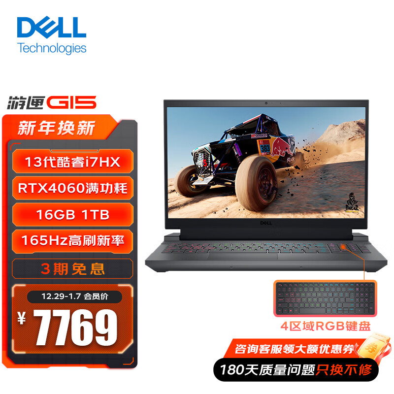 戴尔(DELL)新游匣G15 5530游戏本 13代酷睿15.6英寸 游戏笔记本电脑电竞本高刷屏高性能 13代i7HX/4060/16G/1T/黑 官方标配价格:7799.00元!