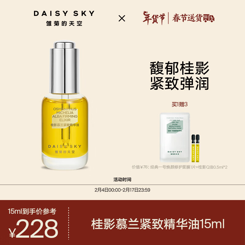雏菊的天空 桂影慕兰紧致精华油轻薄滋润肌肤细腻毛孔面部精华补水15ml礼物价格:248.00元!