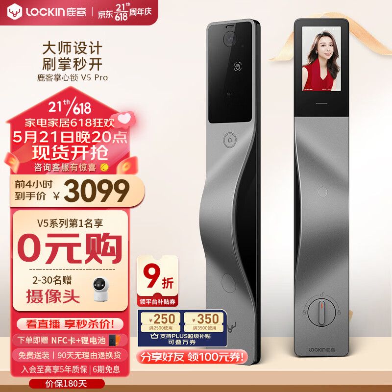 鹿客(lockin)掌心锁V5 Pro掌静脉识别猫眼大屏电子锁指纹锁APP智联适用左开价格:3299.00元!