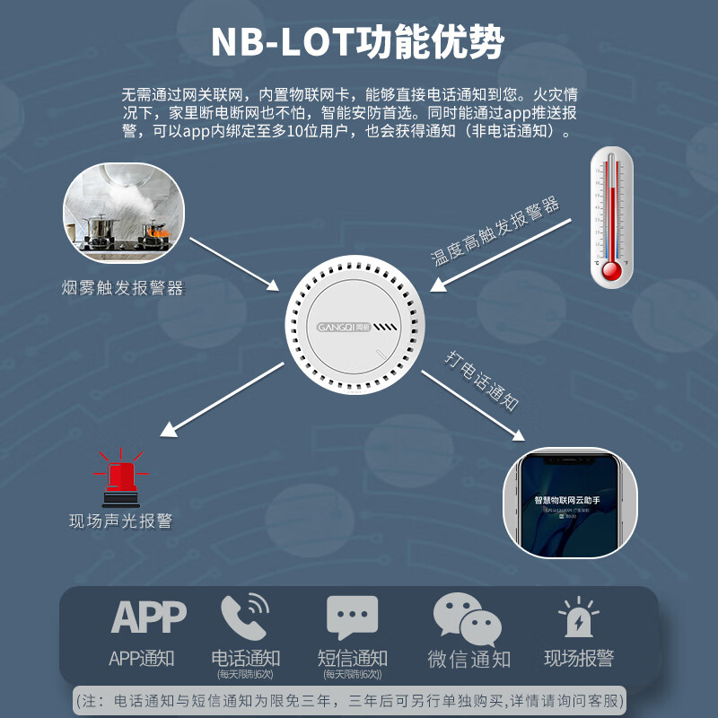 岡祈(Gangqi)关联款 电话通知烟雾报警器 温度烟雾一体双感电池款 家用无线消防火灾烟感器YJ-118NB价格:149.00元!