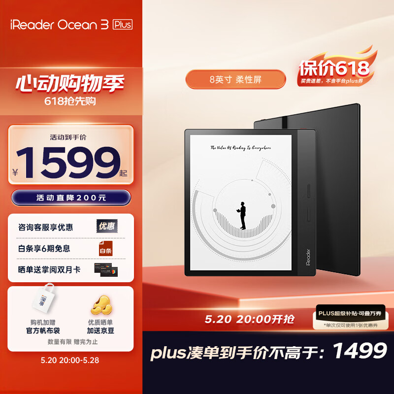 掌阅iReader Ocean3 Plus 8英寸电子书阅读器墨水屏平板电纸书电子纸便携阅读学习看漫画石墨灰32GB价格:1599.00元!