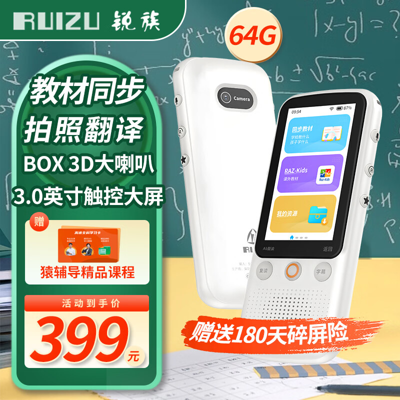 锐族V08英语学习机听力宝单词记背mp3随身听复读机儿童小学初中高中考研神器礼物课程同步教材64GB价格:649.00元!
