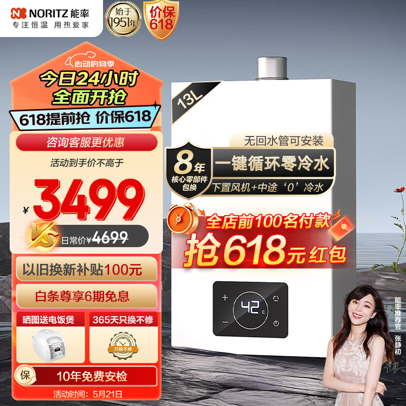 能率(NORITZ)零冷水燃气热水器13升 中途开关“0”冷水 降噪恒温GQ-13E5FEXQ(JSQ25-E5Q)天然气价格:3799.00元!
