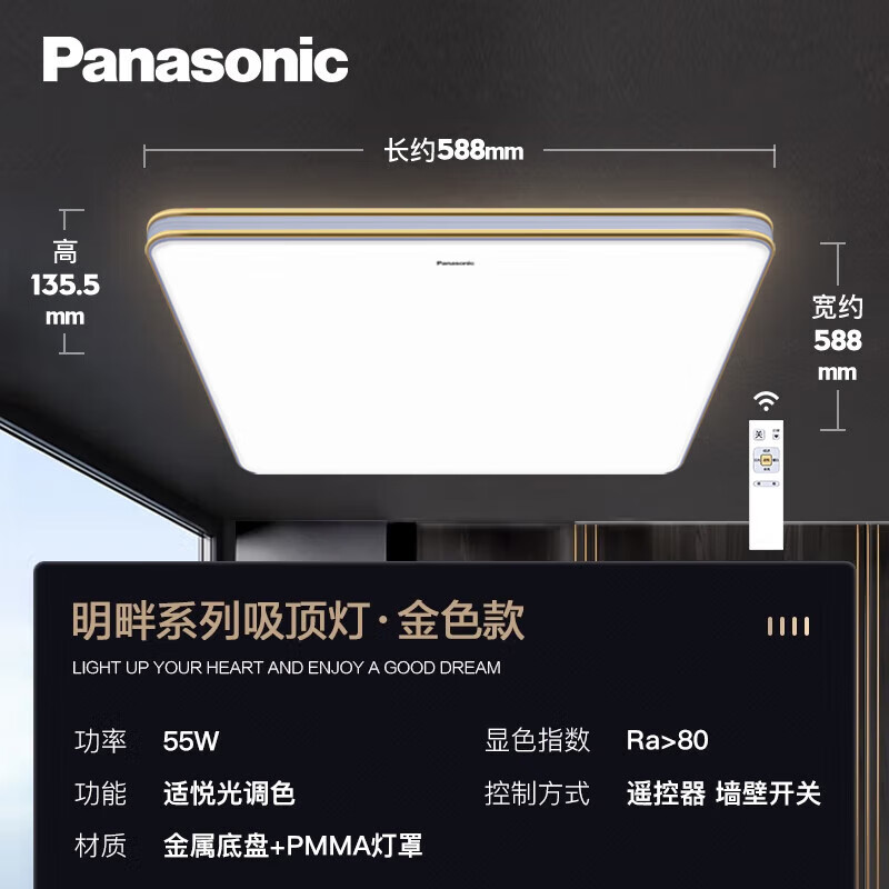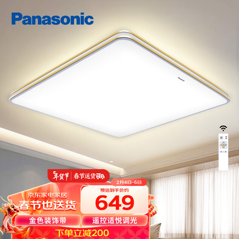 松下(Panasonic)客厅灯卧室吸顶灯遥控简约金色饰带55瓦价格:849.00元!