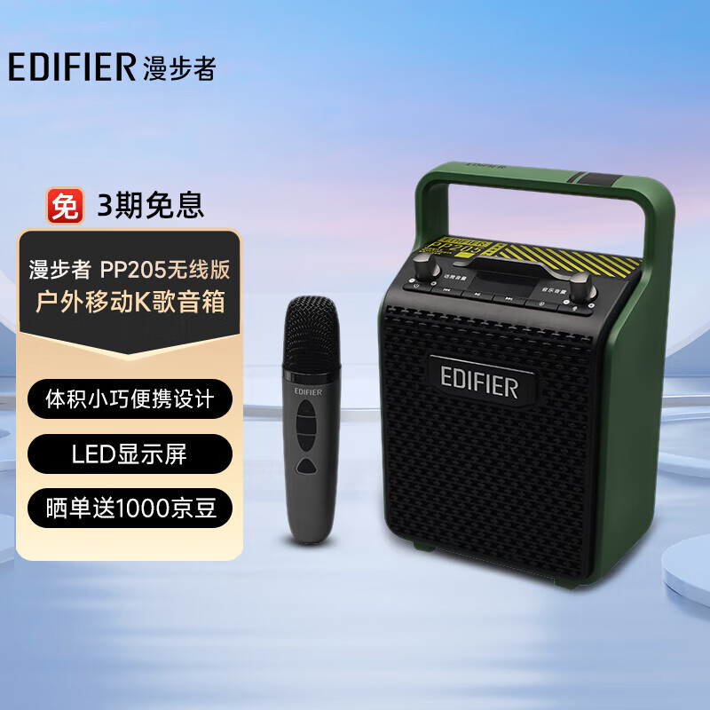 漫步者(EDIFIER)PP205无线版手提便携式蓝牙音箱 户外音响 K歌音箱 商超导购 广场舞音响教学扩音器 军绿色价格:389.00元!