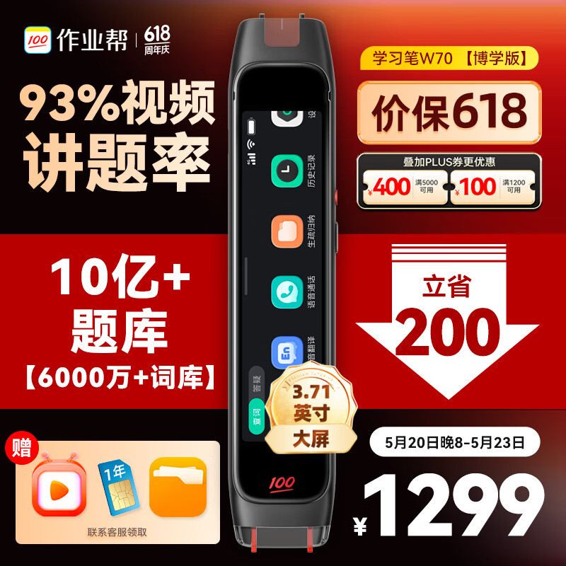 作业帮全科学习笔二代博学版W70 【无二次收费】原题精讲覆盖小初高 中英文点读笔词典笔学习机 3.71英寸价格:1299.00元!