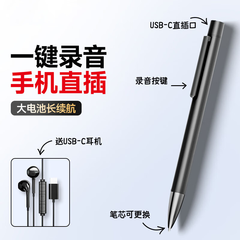 梵沐 录音笔L61 边写边录 专业高清降噪 一键录音 学习培训 商务会议 采访速记 录音器 64G 黑色价格:269.00元!