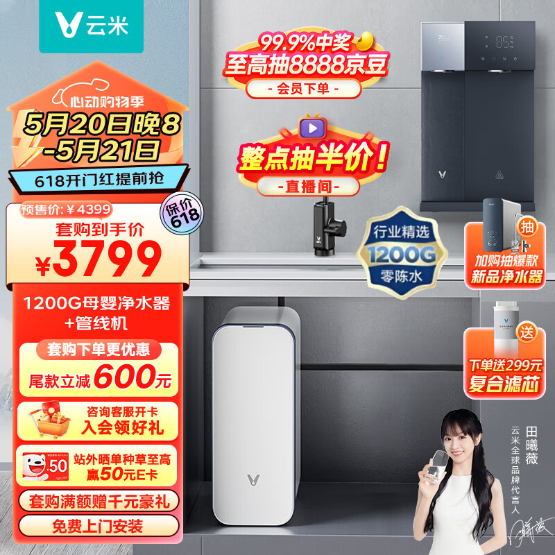 云米(VIOMI)Super Y 1200G全屋净水套装净水器+冷热管线机Master 3两件套家用直饮加热即热净水器净水机价格:3899.00元!
