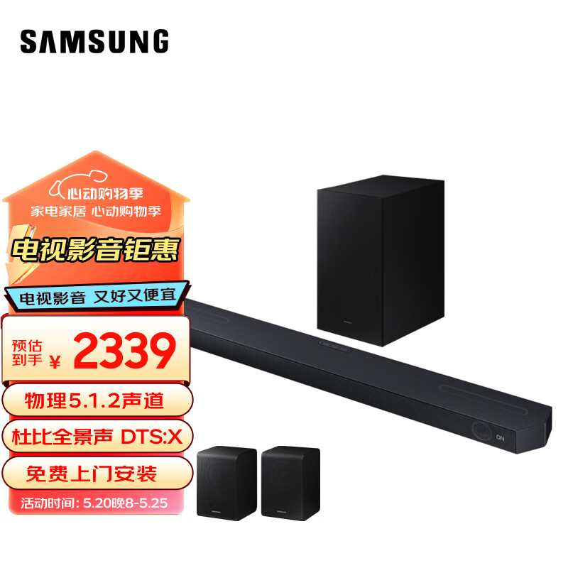 三星(SAMSUNG)HW-Q600C/XZ+SWA-9200S套装 5.1.2全景音效 无线蓝牙回音壁 Soundbar 条形音箱 家庭影院价格:2339.00元!