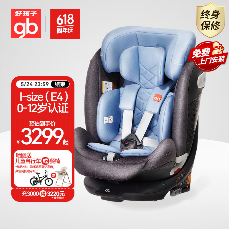 好孩子(gb)儿童座椅汽车用0-12岁360°旋转I-Size认证8系高速舱1号价格:3799.00元!