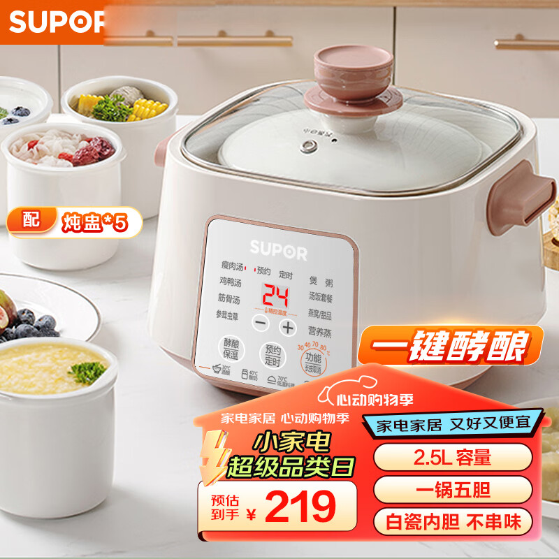 苏泊尔(SUPOR)电炖锅 电炖盅 煲汤锅炖汤锅 隔水炖锅 燕窝炖盅 煮粥神器 电汤锅 陶瓷熬粥专用锅 DZ25YC828 2.5L价格:219.00元!