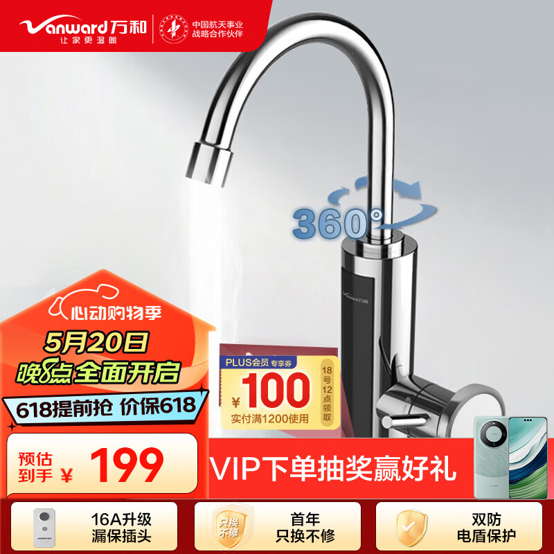 万和(Vanward)电热水龙头【304不锈钢】双防电盾防护下进水数显式冷热两用速热即热式水龙头F-EF23-30价格:199.00元!