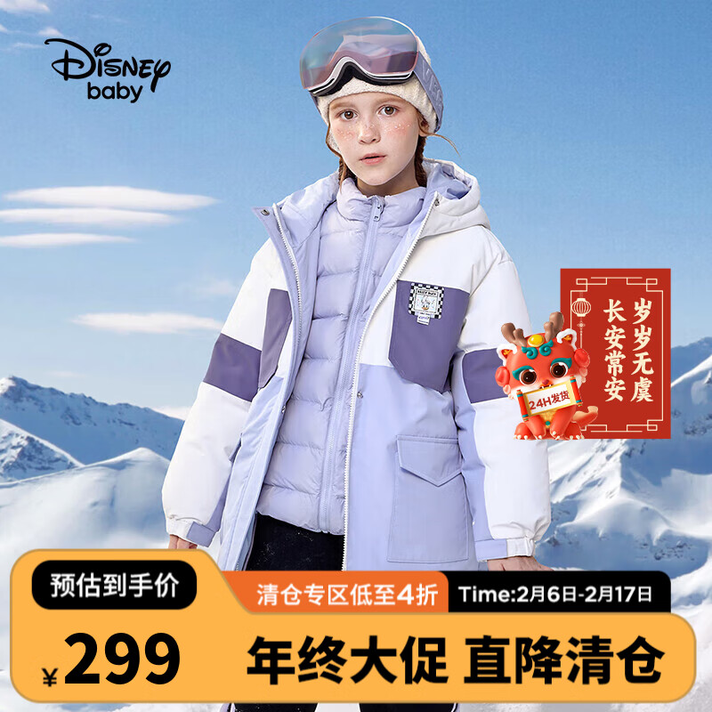 迪士尼(DISNEY)拼色三合一两件套羽绒服童装儿童女童23冬DB341KE33紫色拼接120价格:299.00元!